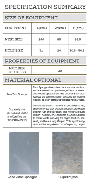 • Capacity : Each compartment accommodates 5.5-6 chickens, allowing 110-120 chickens per cage.
