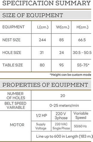 • Includes an egg collection table that works in conjunction with the rear-coop conveyor belt system.
